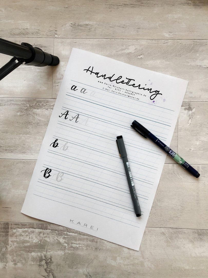 In diesem Handlettering-Anfängerkurs werden alle Grundlagen erklärt, die fürs Handlettering/Brushlettering (handgeschriebenes, kunstvolles Schreiben mit Filzstiften, Fineliner, Pinsel) benötigt werden.