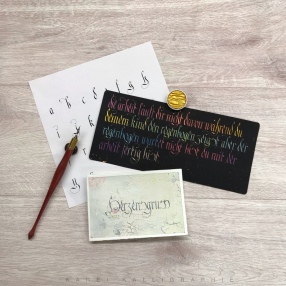 Im zweiten Teil des Kurses erlernen wir die Großbuchstaben und fertigen kalligraphische Kostbarkeiten, die sich nicht nur für die Weihnachtszeit eignen.